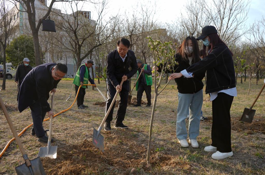春风拂枝吐新绿,正当植树好时节。3月29日下午,校领导李文喜、曾宪明、路绪剑、丰雷、安涛、张昌林、林勇在市中校区开展义务植树活动。办公室、组织部、审计处、团委、学生工作处、计划财务处、后勤服务处、校园建设与管理处、保卫处、招生就业处、网络中心等部门负责人,以及市中校区二级学院党总支书记和学生代表等参加植树活动。