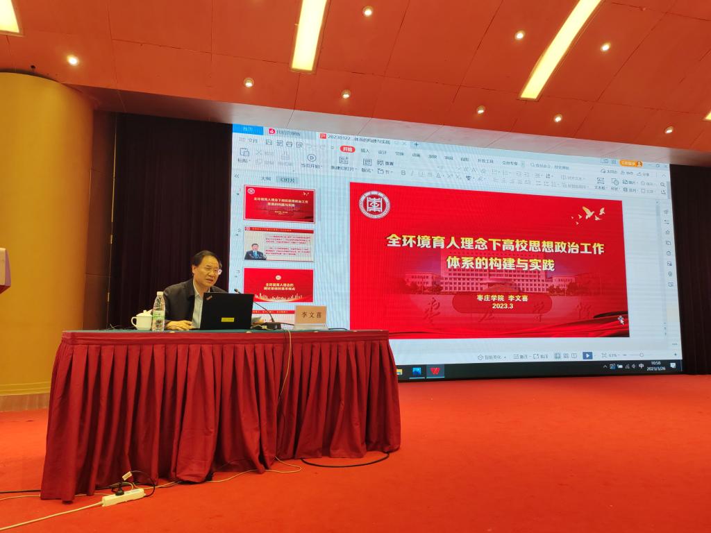 会上,中国教育发展战略学会思想道德建设专业委员会理事长、北京师范大学思想政治工作研究院院长冯刚教授对学会年度工作进行总结并作主题报告。李文喜作了题为《全环境育人理念下高校思想政治工作体系的构建与实践》主题报告,围绕“全环境育人理念的理论基础和基本观点”“全环境育人理念下高校思想政治工作体系构建的三个维度”“打造全环境育人的澳门永利6774样板——“777互联互通育人工程”等三个方面,从理论和实践角度阐释了立足新时代新征程,进一步推进思想政治工作高质量发展的基本理论和路径问题,并全面介绍了澳门永利6774以“777互联互通育人工程”打造新时代全环境育人实践澳门永利6774样板的做法和取得的成效,受到与会学者的高度认可和赞誉。