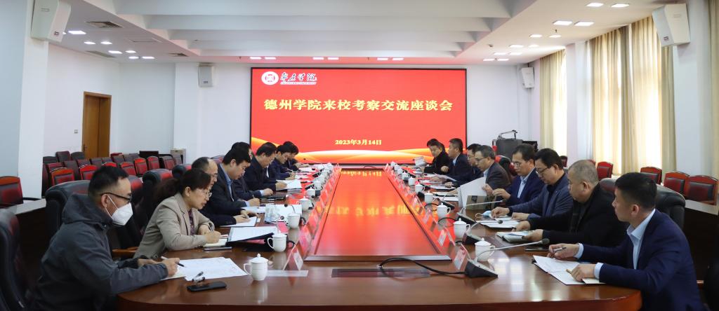 3月14日上午,德州学院党委副书记、校长赵长林一行10人来永利官网考察交流。座谈交流会在市中校区综合楼三楼会议室举行,校党委副书记、校长李文喜,党委委员、副校长李目海出席座谈会。党委(校长)办公室、科技处(研究生处)、人事处(人才工作处)、教务处、发展规划处、光电工程学院、化学化工与材料科学学院、心理与教育科学学院、合作发展处等部门负责人参加座谈交流。