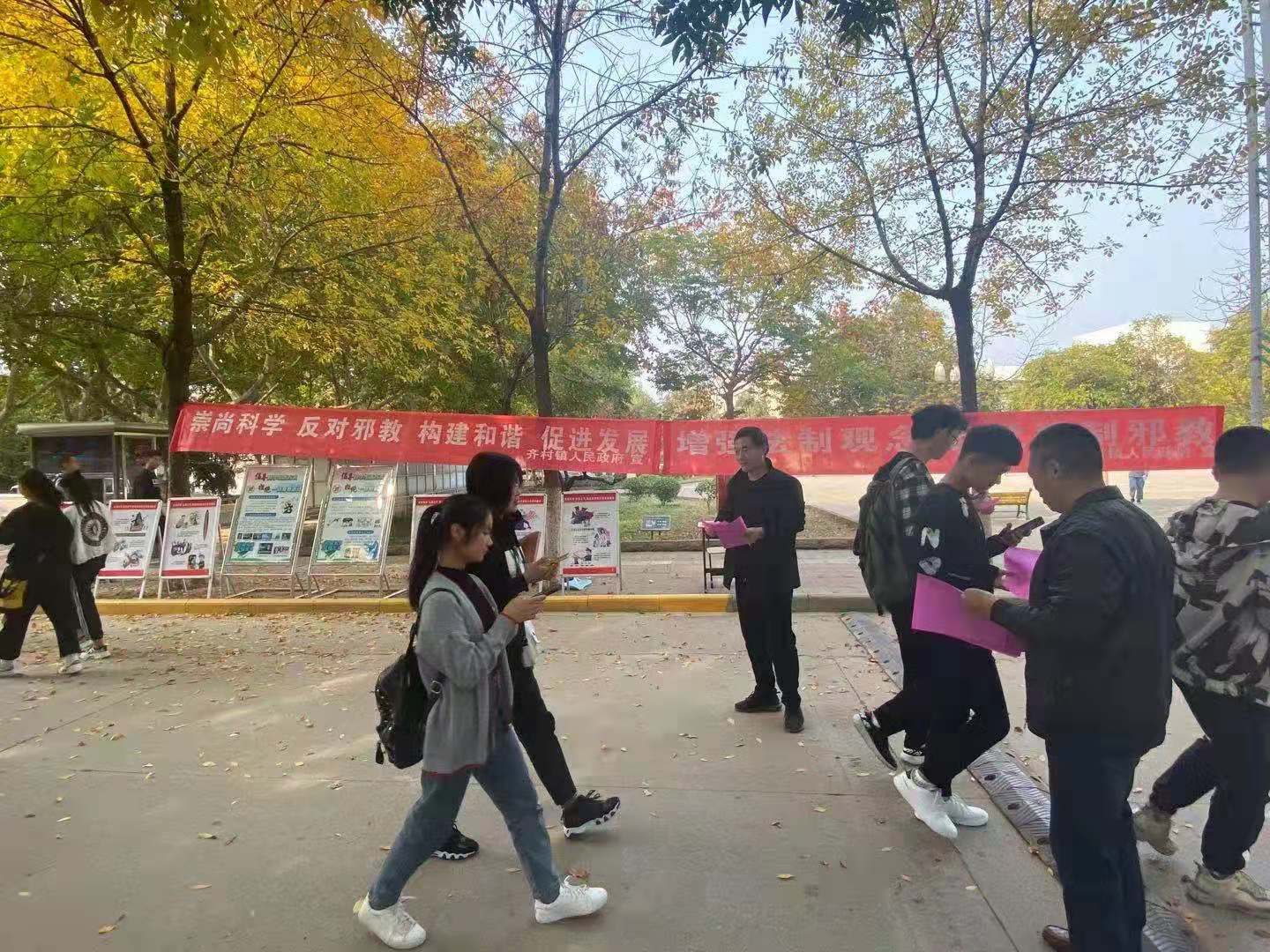 活动通过发放材料、带领学生观看反邪教宣传展板的方式,生动直观地向学生们介绍了“什么是邪教”、“邪教对社会的危害”、“邪教的骗人手段主要有哪些”等相关内容。保卫处工作人员在现场向同学们讲述了邪教的危害,并详细阐述了当代大学生应如何抵制邪教行为。活动中,同学们纷纷表达了崇尚科学、反对邪教,构筑和谐校园的决心和信念。