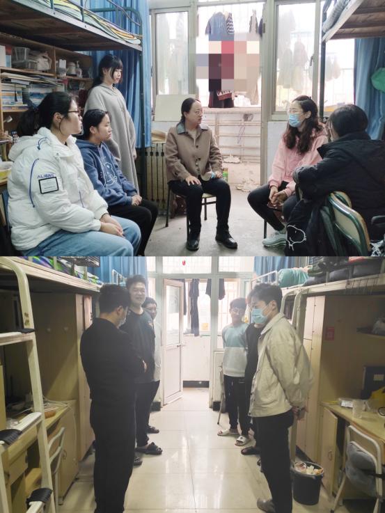 在检查宿舍时,检查组一行与同学们亲切交谈,详细了解大家的生活、学习和心理情况,认真听取学生学习以及生活方面管理的意见和建议,要求同学们疫情期间遵守学院宿舍管理制度,加强安全防范工作,提升心理调适能力。
